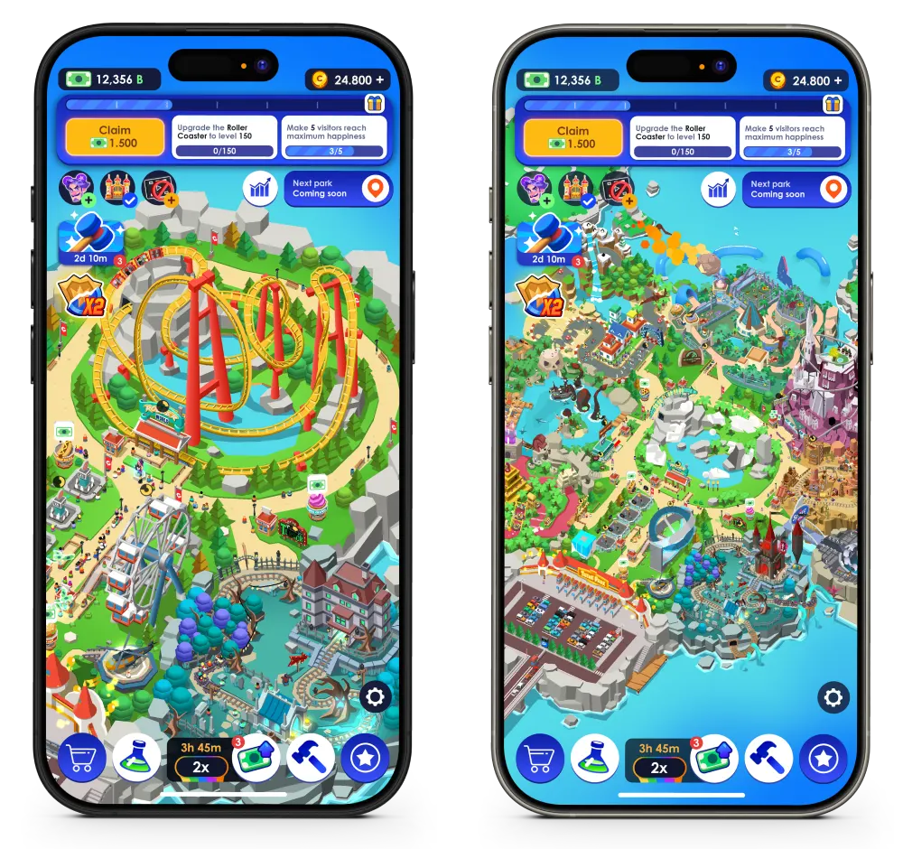 Discover unique parks with exclusive rides and face new challenges as you grow your business. There are plenty of original rides with exciting upgrades waiting for you!