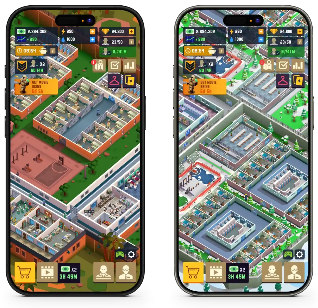 Make smart business decisions and watch your prisons evolve. Unlock and collect special cards that grant permanent bonuses, and build the most successful correctional facilities.